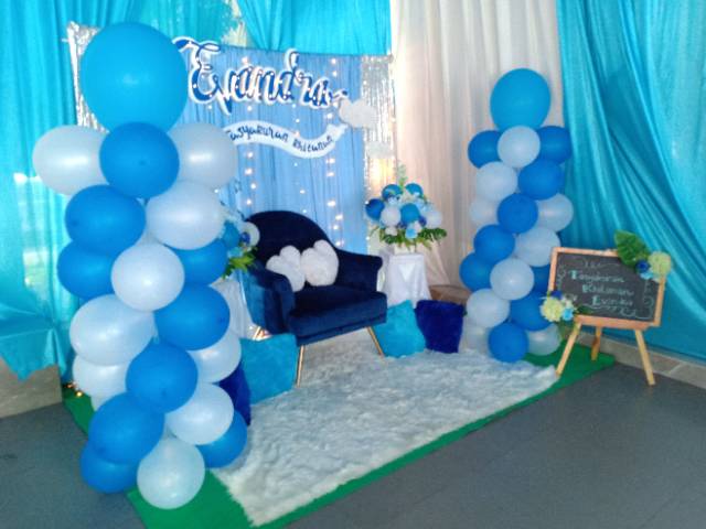 Jual Dekorasi Lamaran Akad Wedding Aqiqah Gawangan Rustic Backdrop White Blue Balon Shopee Indonesia
